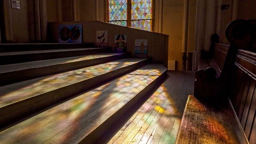 10. Oktober um 16 Uhr „Ein zauberhaftes Spiel mit dem Licht des Himmels - Die Ginflaschen- und Buntglasfenster in der Zwölf-Apostel-Kirche“