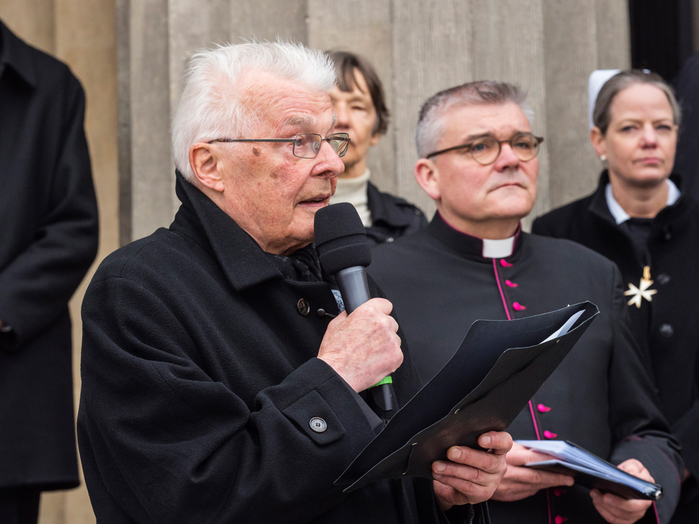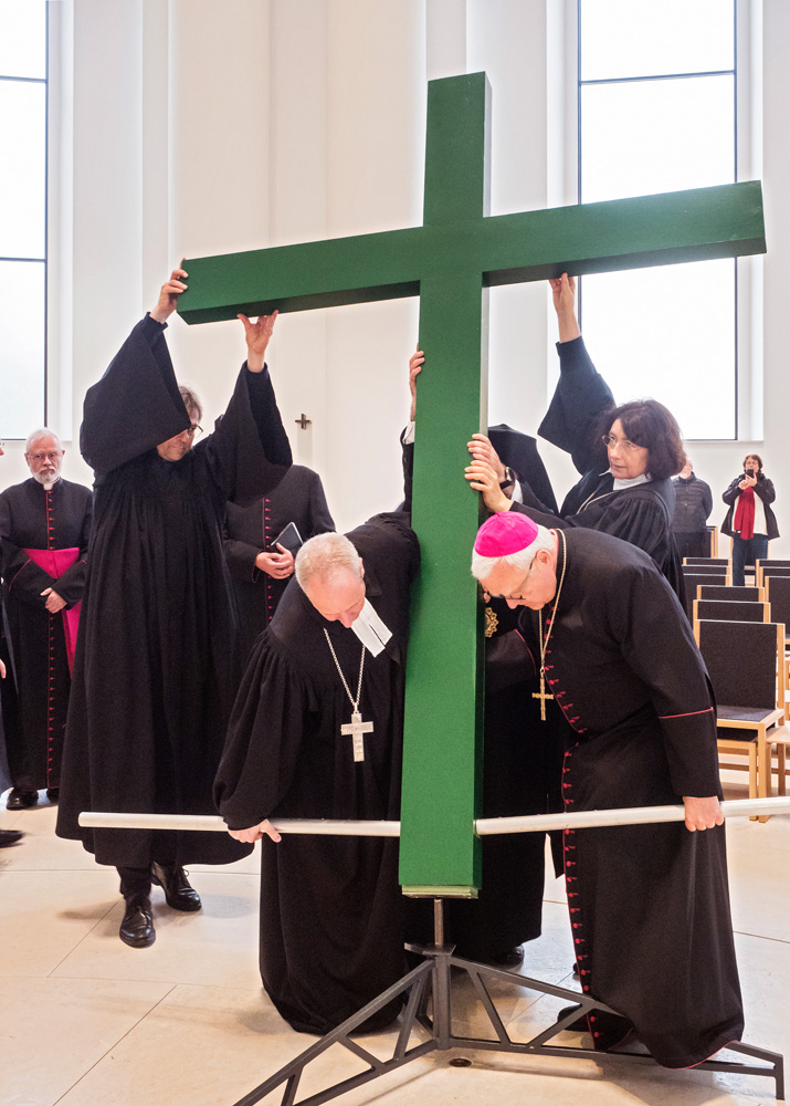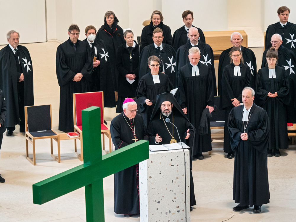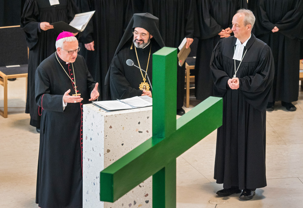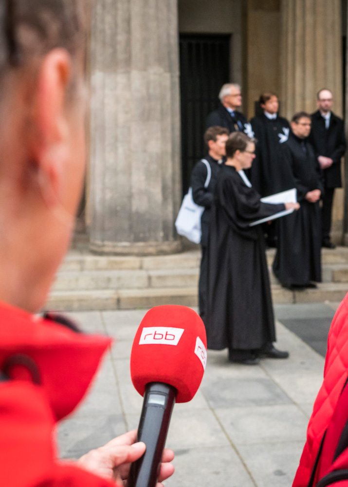 Bei der von der Evangelischen Kirche in Berlin Stadtmitte veranstalteten Karfreitagsprozession sind auch Glaubensgeschwister aus der Ökumene dabei. Bischof Stäblein, Erzbischof Koch und Bischof Emanuel repräsentieren diese ökumenische Glaubensvielfalt durch ihre Teilnahme.